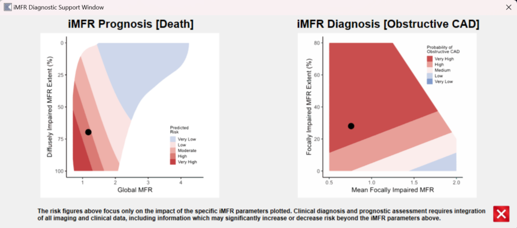 By merging these metrics, iMFR classifies myocardial perfusion as normal, focally impaired, or diffusely impaired.