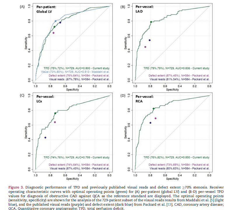 Renaud JM, Moody JB, Vanderver MD, Poitrasson-Rivière A, Buckley CJ, Ficaro EP, Murthy VL. Diagnostic performance of ¹⁸F-flurpiridaz PET myocardial perfusion imaging with total perfusion deficit quantification. Journal of Nuclear Cardiology. 2025;102266.